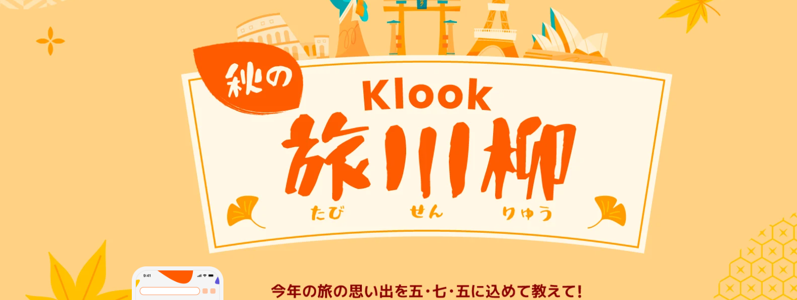 世界中の観光・交通・通信・宿泊を予約できる旅行・体験予約アプリ「Klook(クルック)」は、旅先でのエピソードを五・七・五で表現するSNSキャンペーン「秋の#Klook旅川柳」を2025年10月10日(金)より開催いたします。